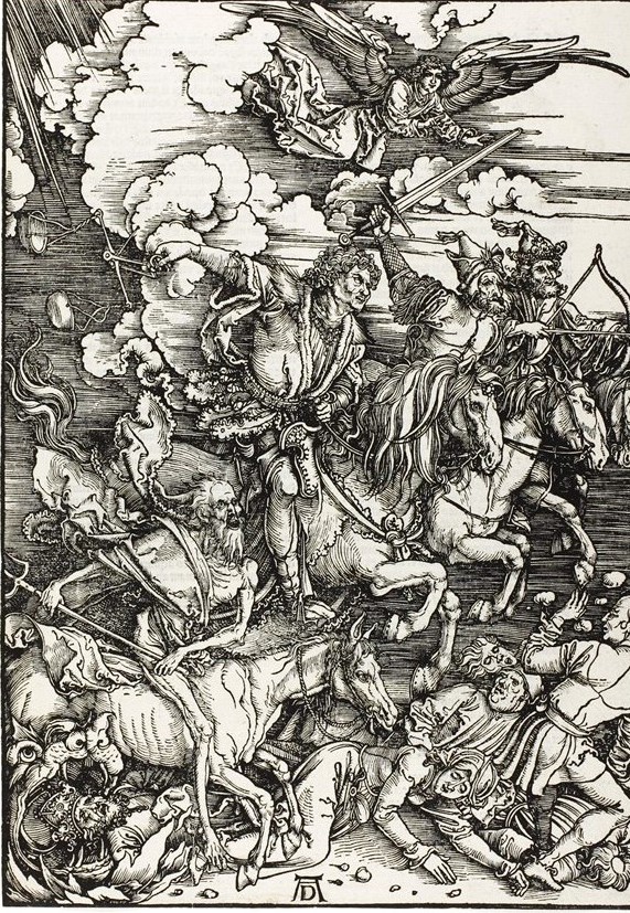 下、デューラーの「黙示録」より、「四人の騎者」。素晴らしい!