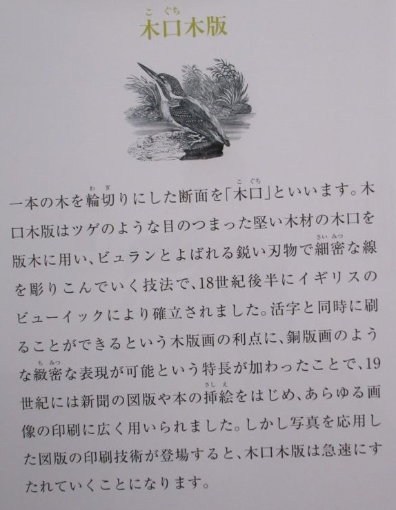 ところで、木版画は、<小口(こぐち)>木版の技法により復活する。