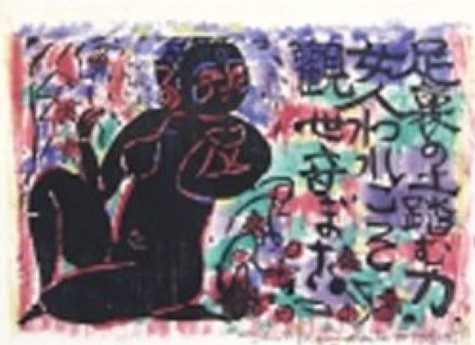 志功の書入れは「足裏の土踏む力 女人われこそ 観世音ぼさつ」