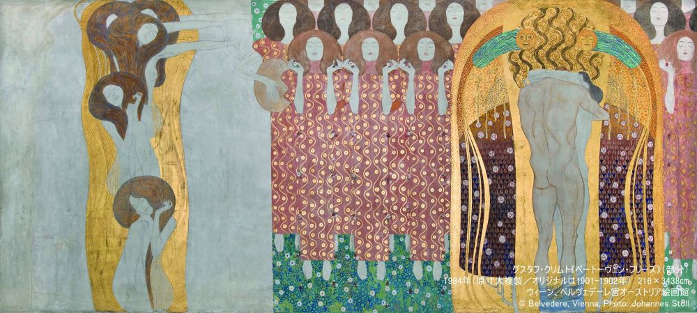 ベートーベンフリーズのクリムトの作品は天井近くの上段の壁に描かれている。