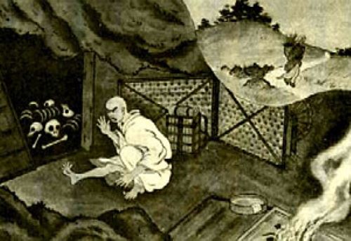 奥の部屋を絶対に見てはいけないと祐慶に言いつけて岩屋から出て行った。
