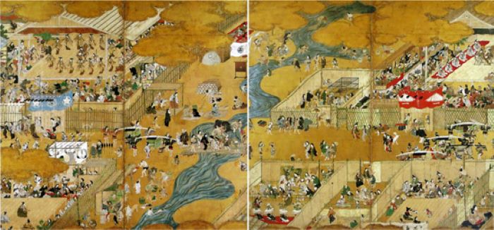 「四条河原遊楽図屏風」と同様、賑わいを描く。