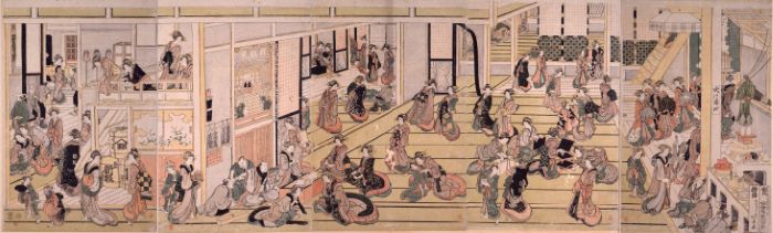 下図は、葛飾北斎作「吉原妓楼の図」
