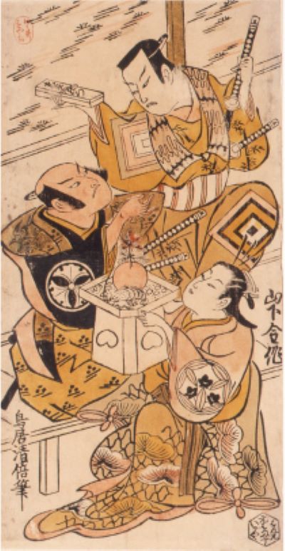 二世鳥居清倍作: 「山下金作、市川団十郎、松本幸四郎」