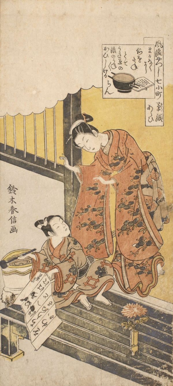 例えば、紅摺絵では、鈴木春信の「風流やつし七小町 草子あらい」がある。