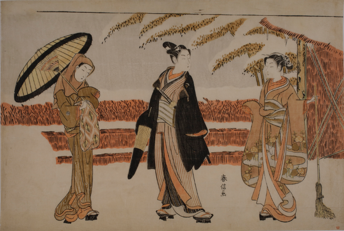 下、鈴木春信の「雪中の若衆と二人の美人」