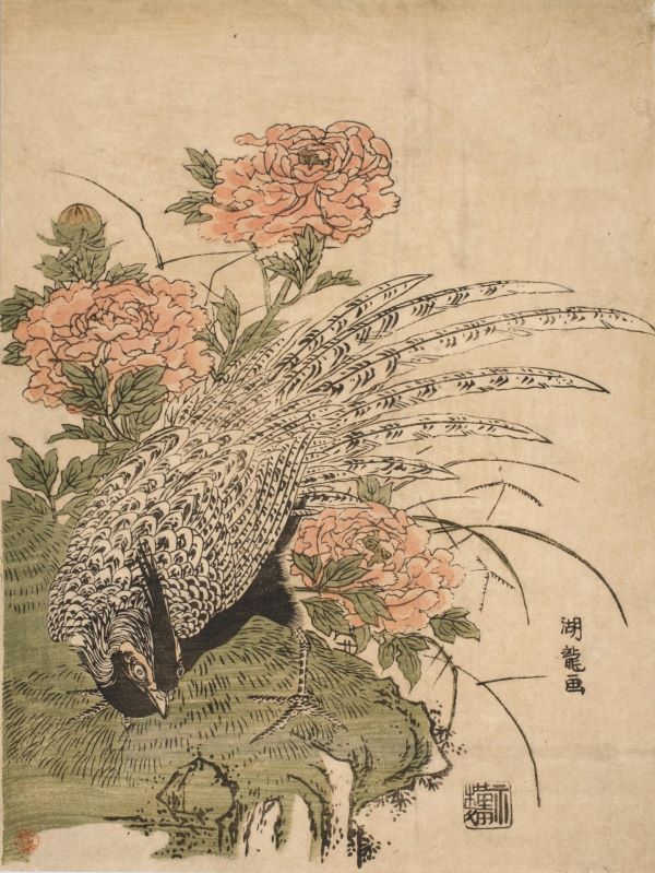磯田湖龍斎の「雉と牡丹」