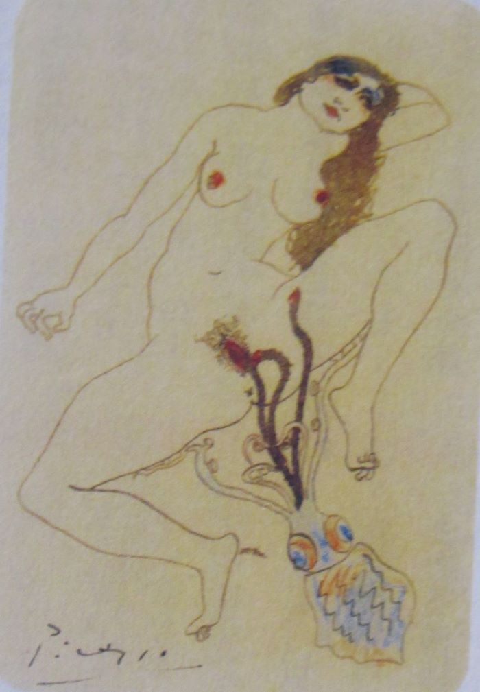 ここで紹介するのは。パブロ・ピカソの「女と蛸」。明らかに北斎の作品を観ていた。