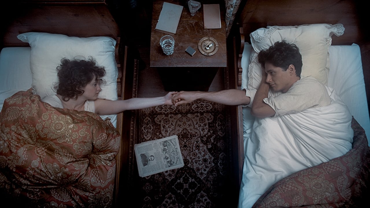 冒頭にスペイン風邪に罹った妻エーディトを看病しながら病に伏せるエゴンを描き、
