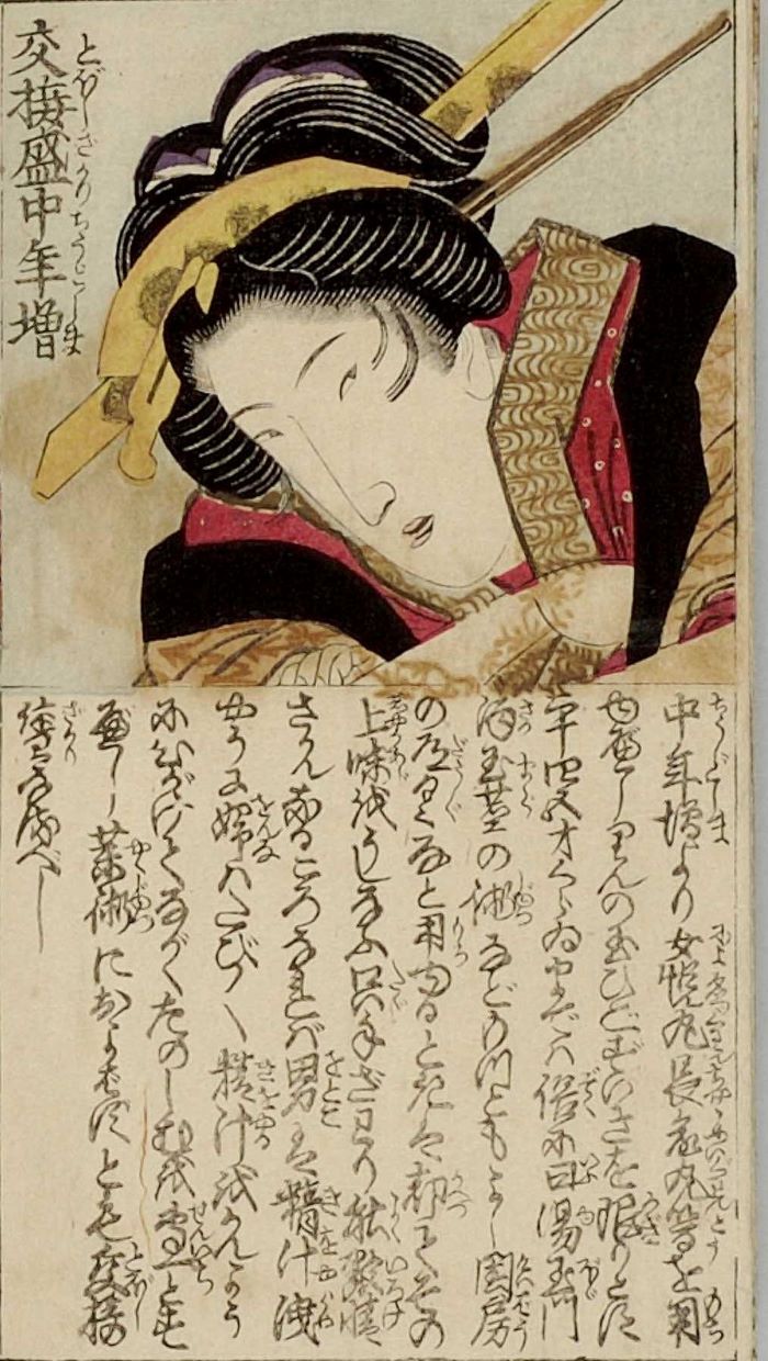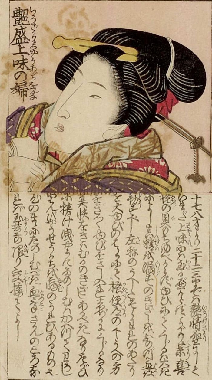 次の画像は、「艶盛上味の婦」。ふりがなは「いろざかり志やうあぢ をんな」