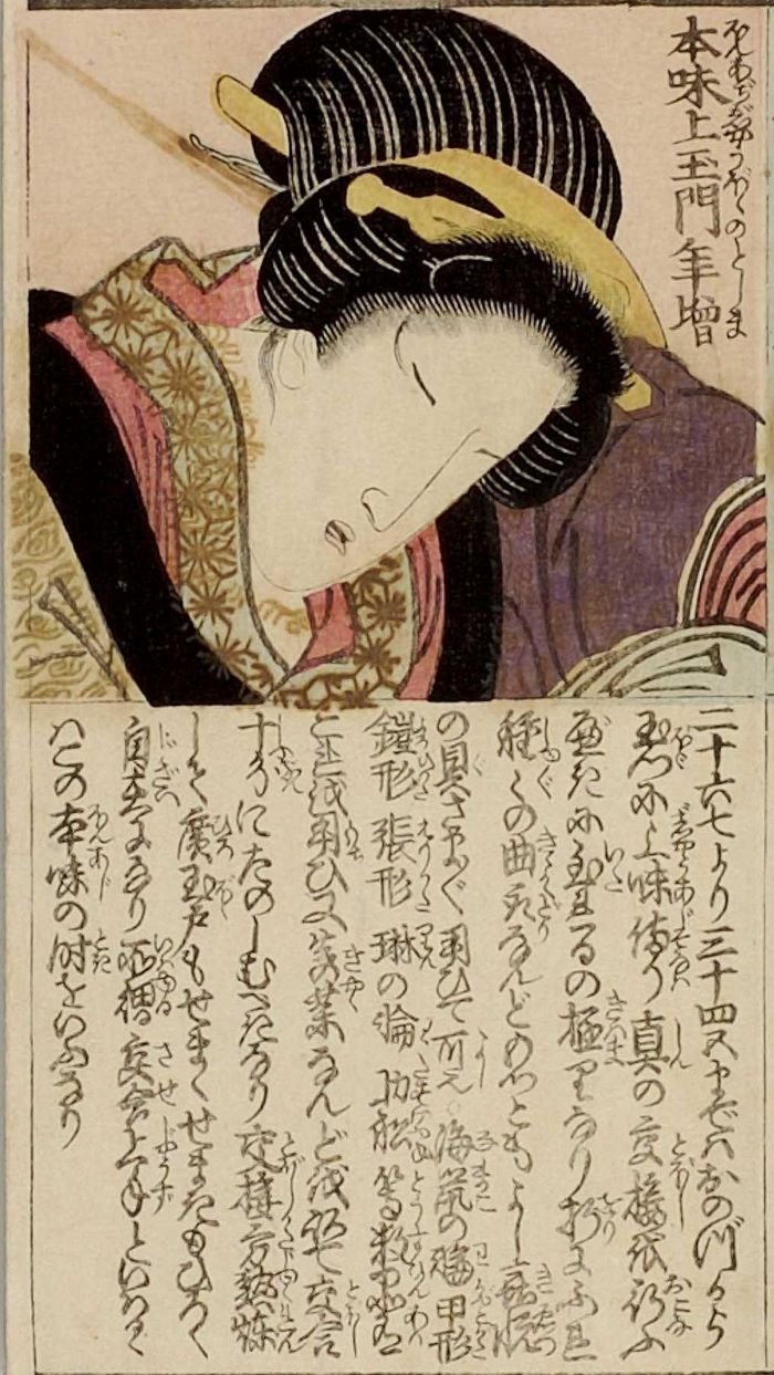 図2の表題「本味上玉門年増」、かな「ほんあぢじやうぼゝのとしま」。