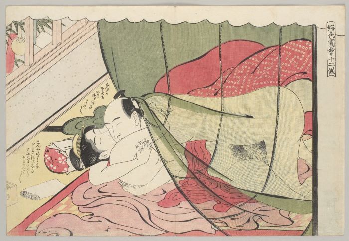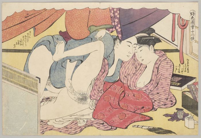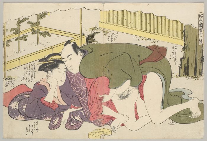 男は酒より<やり過ぎ>の方が身体に悪いと。二人の体位は不自然(春画ではままある)か。