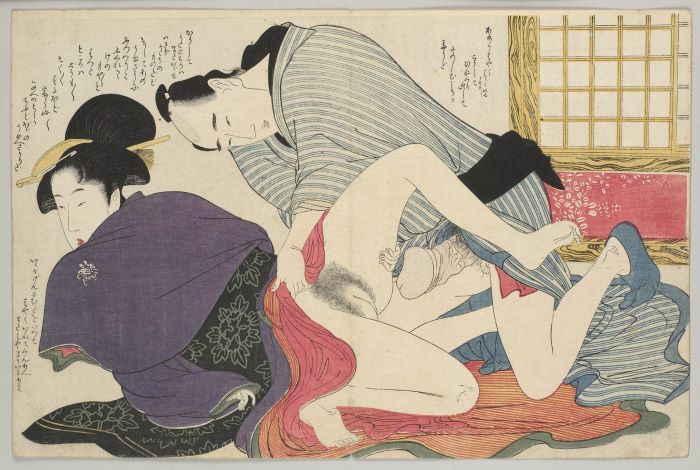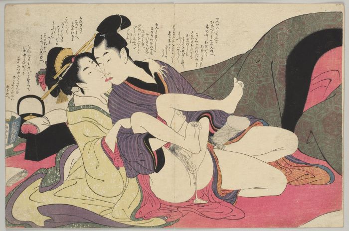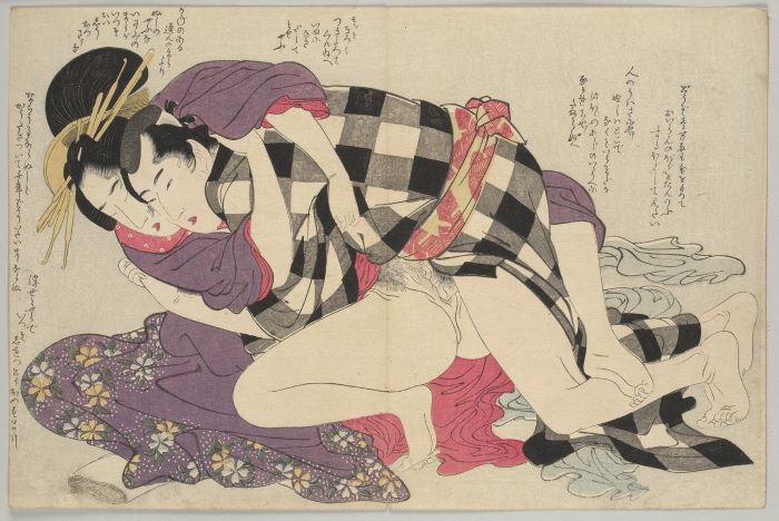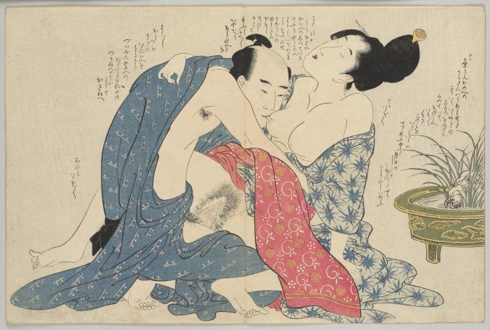 若衆の左手が新造の着物の裾に入って、