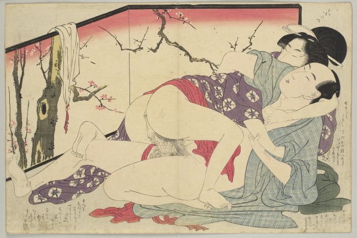 次は十一図、浴衣姿の女と褌姿の男、