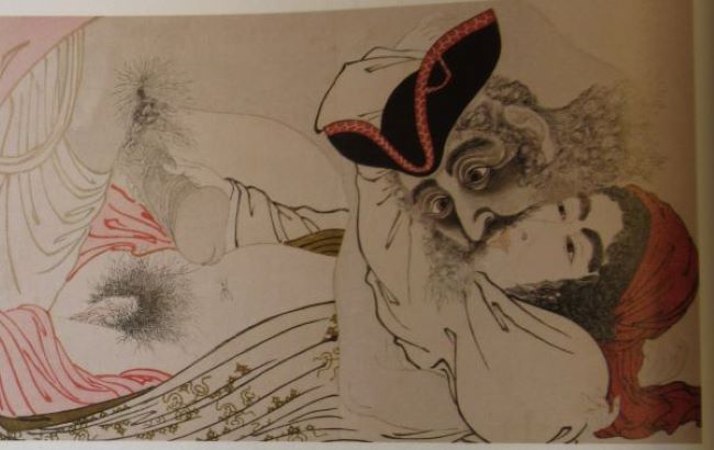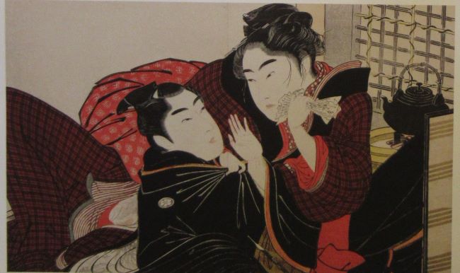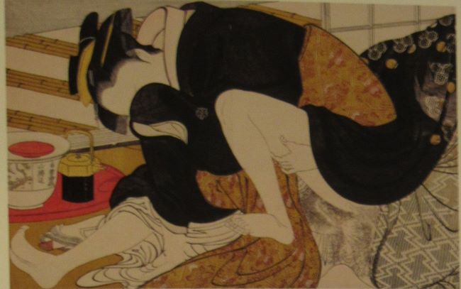 春画では男女の赤裸裸な姿態を描くものが多いが、