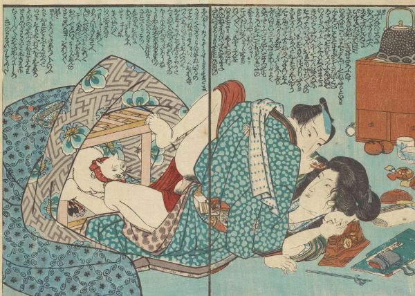 春画では、男と女の顔を描き、<交合>する姿態を大写しに描く。