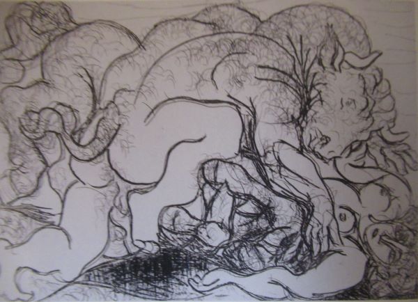 上の画像が、ピカソ、「アマゾネスを襲うミノタウロス」