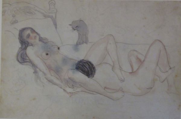 次はピカソ作「二人の男女と猫」、ドローイング画。