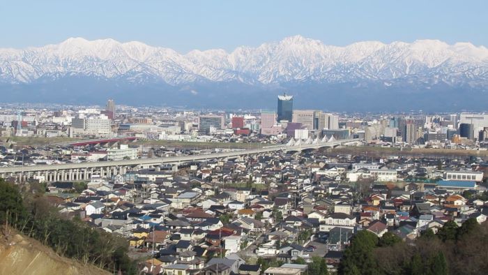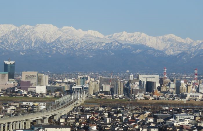 呉羽山展望台から写真を撮ったけれど、下の二枚の写真に「雄山」が映ってるかなぁ。